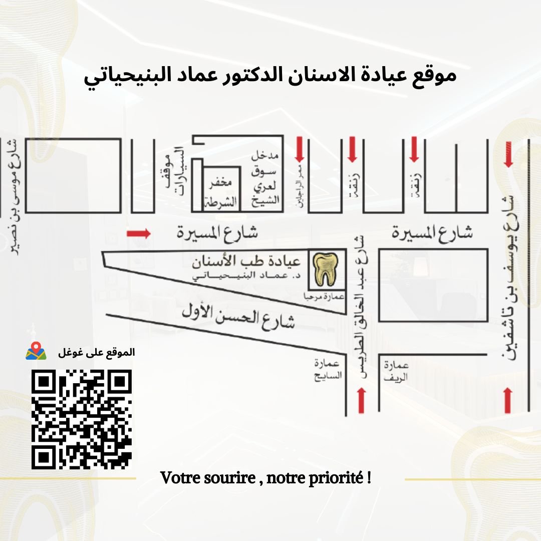 "Al Banyahyati Dental Clinic | Dr. Imad Al Banyahyati est une clinique dentaire moderne dirigée par un dentiste Nador expérimenté. Située à Nador, la clinique offre des soins de haute qualité : implants, soins esthétiques, orthodontie, blanchiment, et traitements préventifs. Le dentiste Nador Dr. Imad utilise des techniques avancées pour garantir confort et efficacité. Que ce soit pour un contrôle régulier ou un soin spécifique, faites confiance à votre dentiste Nador pour un sourire éclatant. Prenez rendez-vous dès aujourd’hui !"